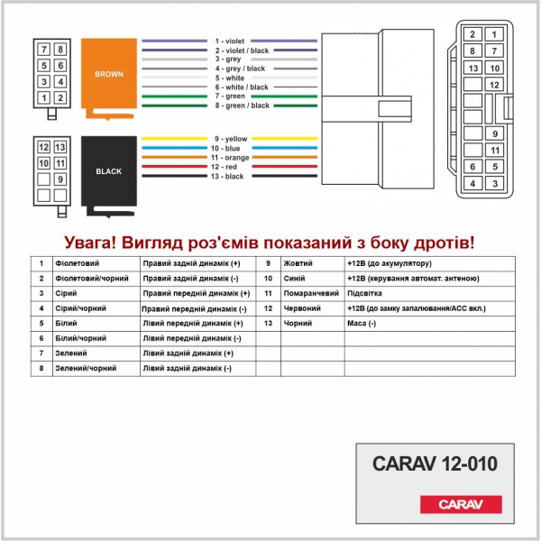 Переходник ISO для замены магнитолы Carav 12-010