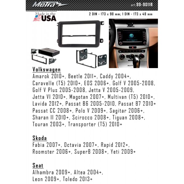 Metra 95-9011B: 2 DIN - 173 x 98 мм;