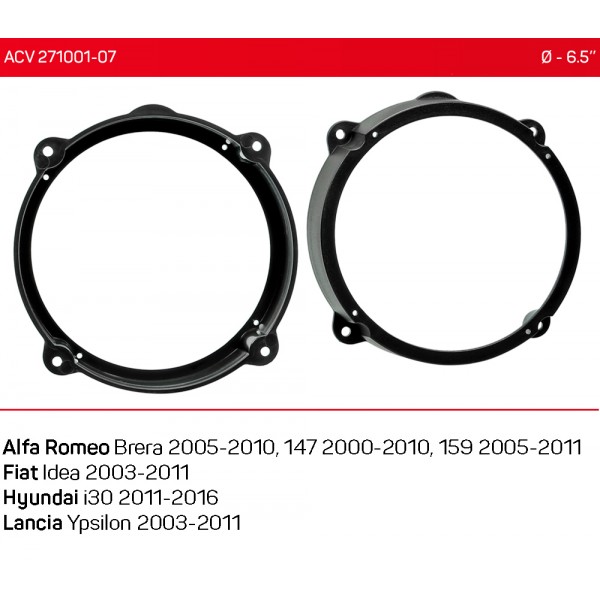 Проставки під динаміки 165 мм / 6.5" ACV 271001-07 для автомобілів Alfa Romeo, Fiat, Hyundai, Lancia
