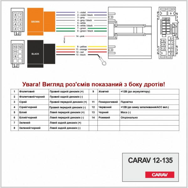 Роз'єм для штатної магнітоли Carav 12-135 для автомобілів: