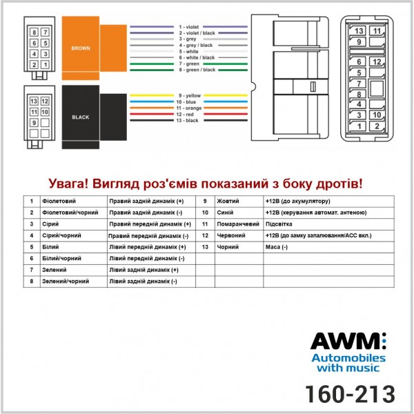 Роз'єм для заміни штатної магнітоли AWM 160-213
