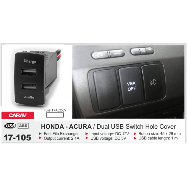 USB разъем в штатную заглушку для автомобилей Honda, Acura Carav 17-105: